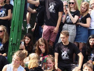 Musik und Lärm auf dem Schulhof und Spiele mit den Lehrerinnen und Lehrern: Der diesjährige Abi-Jahrgang hat das nett gemacht (bis auf die Farbe) und sogar alles vorbildlich wieder aufgeräumt. Vor allem die Spiele mit den Lehrern waren spannend. In zwei Mannschaften antretend mussten sie Fragen wie „Welche Schülerin hat die meisten Brotdosen?“ beantworten. Das jeweilige Verliererteam musste Straf-Sport-Übungen machen, wie z.B. Hampelmann oder Kniebeugen. Die Lehrer nahmen´s gelassen und die Schüler amüsierten sich köstlich.