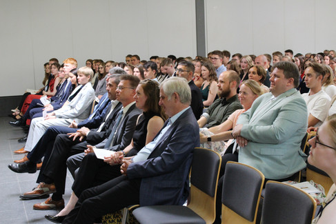 Doch bevor die erfolgreichen Absolventen unseres 13. Jahrgangs den persönlichen Glückwunsch und ihr Abiturzeugnis durch den Schulleiter Herrn Mollenhauer und den Jahrgangsleiter Herrn Frese entgegennehmen konnten, durften alle den Grußworten der Ehrengäste lauschen. Nach der Begrüßung durch Herrn Mollenhauer beglückwünschten der Bürgermeister von Eicklingen und Landtagsabgeordnete Jörn Schepelmann, die Elternratsvorsitzende Susanne Liss und die Vorsitzende des Ehemaligenvereins Marina Maaß die Abiturienten, bevor Jahrgangsleiter Immo Frese in seiner Rede ironisch-humorvoll auf das Abi-Motto „hABIhorsing – ein gutes Pferd springt nur so hoch wie es muss!“ einging und dem Jahrgang bescheinigte, die letzten zwei Jahre ein „Gute-Laune-Faktor“ im Schulleben gewesen zu sein.