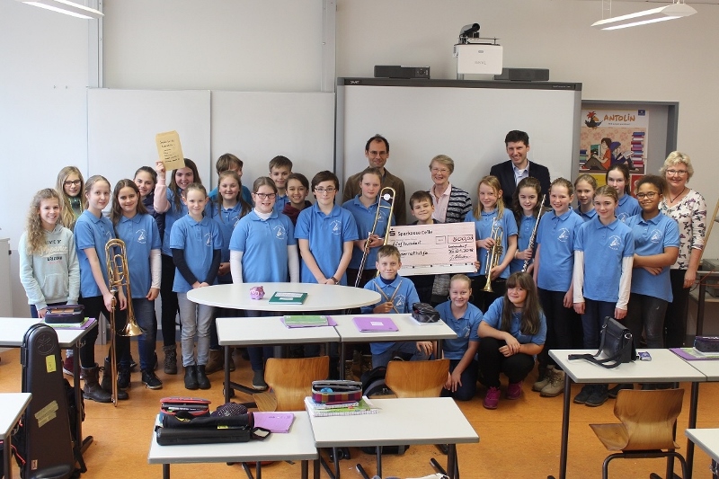 Nun haben Schulleiter Jörg Mollenhauer und Musik-Fachobmann Matthias Baltz im Rahmen des Religionsunterrichts des Kurses 6b/e (Leitung: Gabriele Gottschalk) den symbolischen Scheck von 500,- Euro an Frau Dr. Molsen überreicht. Die Lachendorfer Ärztin engagiert sich seit vielen Jahren für die Kindernothilfe. Sie erklärte nun im Unterricht, wofür das Geld verwendet werden wird. Dabei hatten die Schülerinnen und Schüler der Bläserklasse noch eine besondere Überraschung mitgebracht: Sie haben unter anderem mit dem Basteln von Lesezeichen noch mehr als 60,- Euro dazuverdient, die ebenfalls der Kindernothilfe übergeben wurden. Frau Molsen bedankte sich herzlich im Namen der geförderten Kinder der Kindernothilfe bei allen Beteiligten.